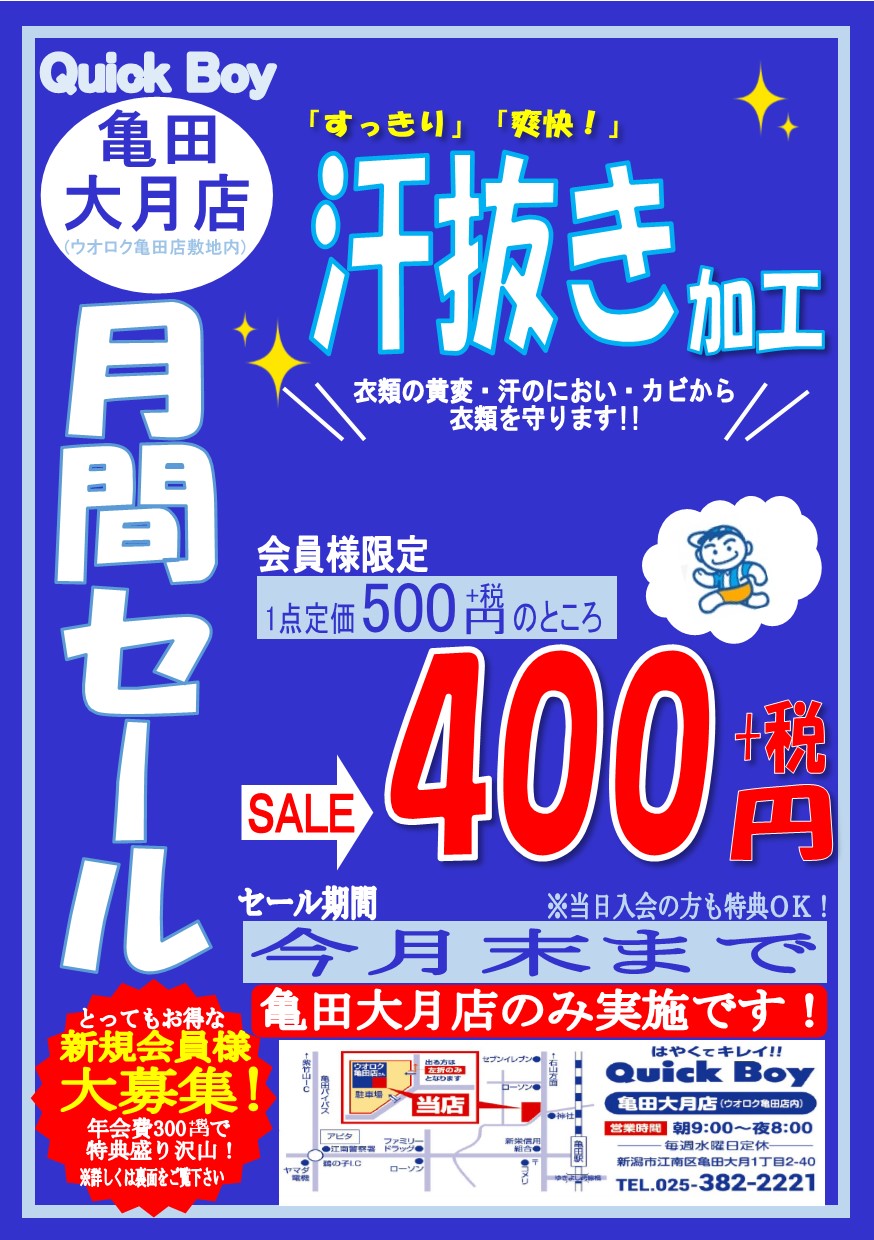 ※クイックボーイ、ハニーズ、せんたく屋十兵衛の店舗は上記セールの対象外です。