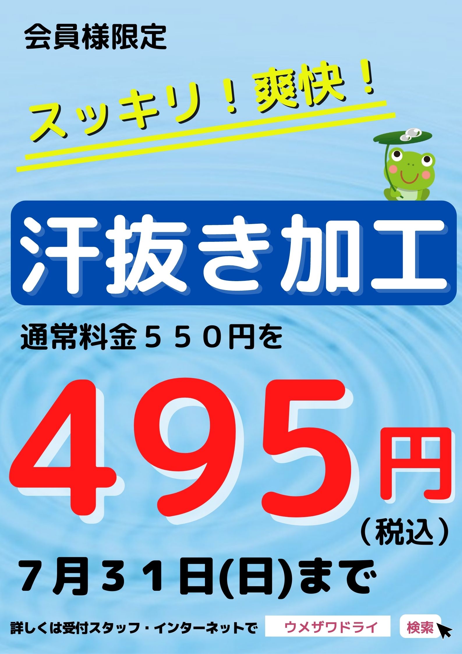 当社各店では 7月31日(日)まで 「汗抜き加工セール」を開催中です!
