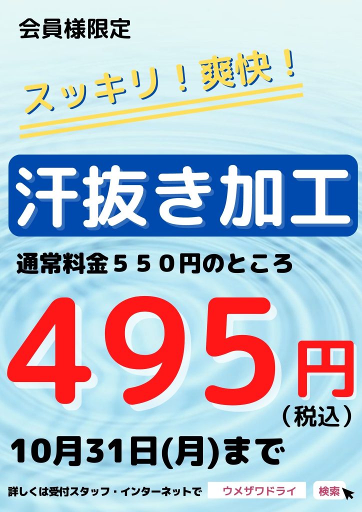 是非、秋の衣替えに「汗抜き加工」をご活用ください(^ω^)/✨