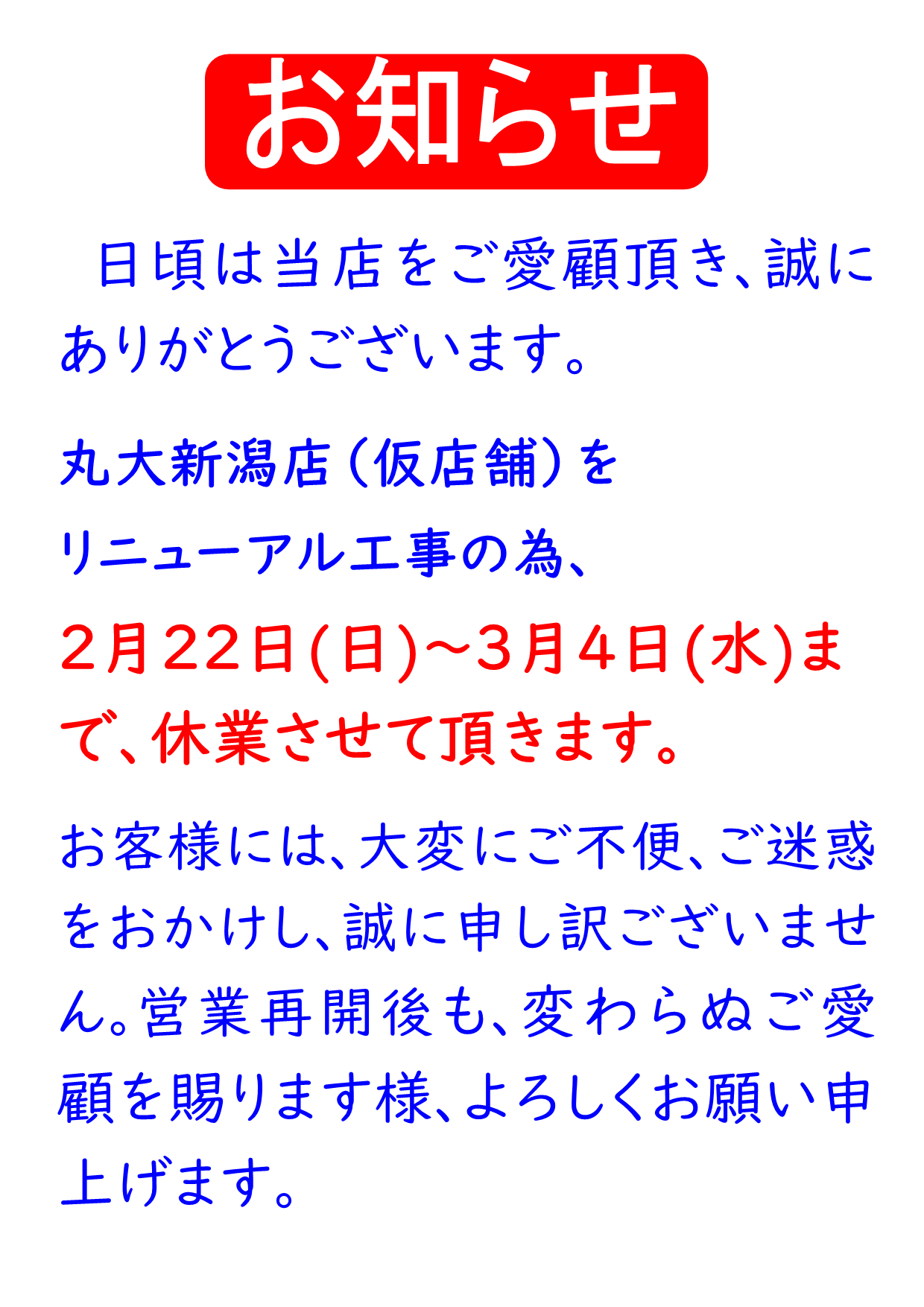 現在、店舗リニューアル工事のため、一時休業させていただいております。